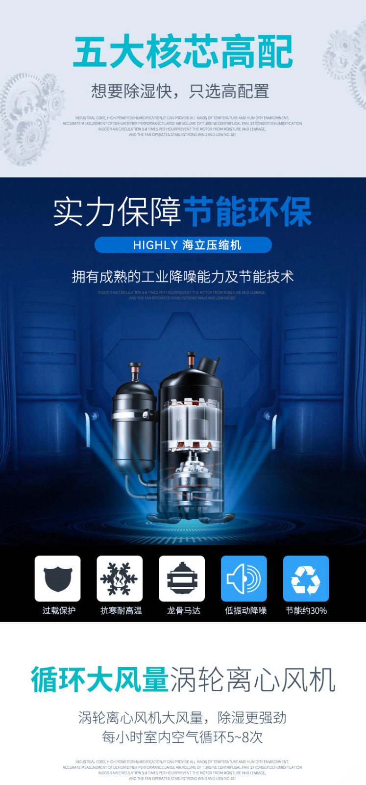 采用双转子压缩机,品质有保障,低能耗的同时做到高效除湿。